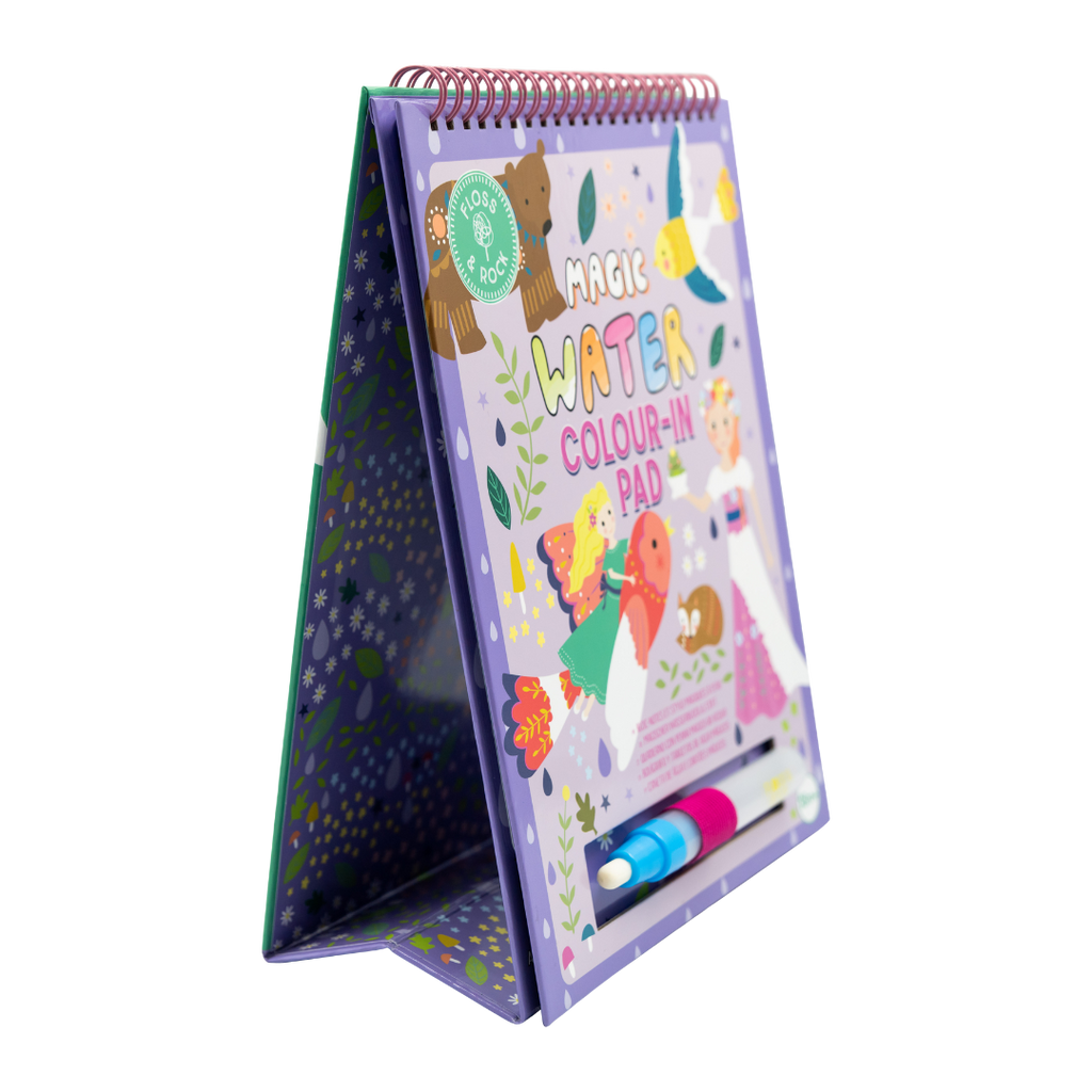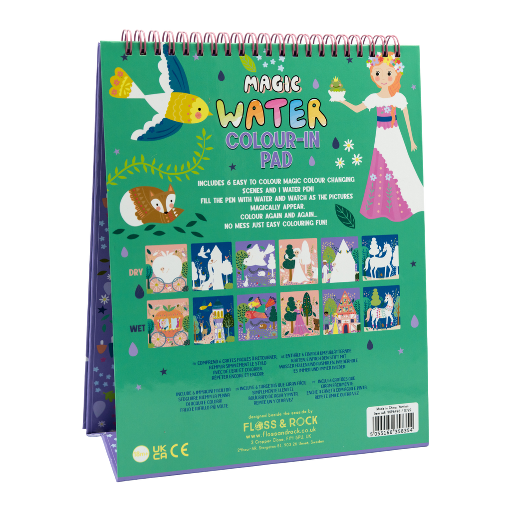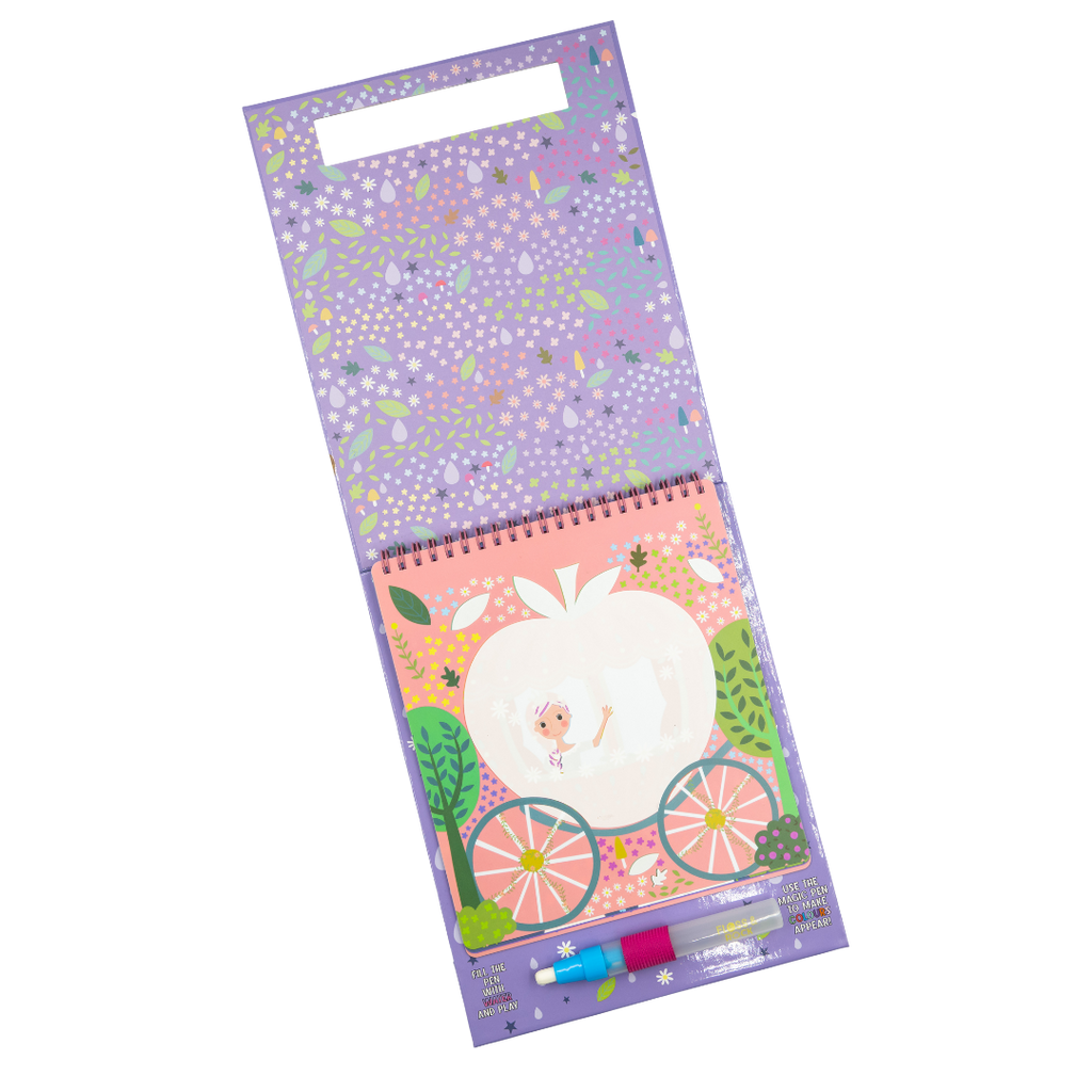 Our Magic Water Easel Pads are so much fun! Like our popular water cards, fill up the pen with water and colour in the designs to see them magically appear, then disappear once dry. The 6 brightly coloured fun sheets are held together in a spiral bound pad allowing you to flip them over once complete. The built-in easel stands the pad up so you can use it like a ‘proper’ artist! The pad is reusable over and over again and you’ll have so much fun revealing the colourful fairy tale pumpkin carriage, towers, horses, birds and more! Once you’ve finished your creative session, close the pad and secure your special water pen in the elastic closure to keep it nice and safe. This portable pad is perfect for taking out and about (and you don’t have to worry about any mess either!)